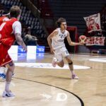 Si segna con il contagocce in avvio di match e in generale nel primo quarto. Tiberti apre la partita con cinque punti di fila, poi è Regoli a trovare con frequenza il fondo della retina. L’equilibrio regna sovrano e non a caso al 10′ siamo 14 pari. Il primo tentativo di fuga del Dany Basket arriva a inizio seconda frazione, quando Antonini insacca tre bombe consecutive, che significano +11 per i biancoblu sul 14-25. Arezzo interrompe il break sfavorevole, ma il gioco da tre punti di Regoli tiene a debita distanza gli avversari (18-28). Due triple in serie permettono ai locali di accorciare a -4, prima dei punti a referto di Regoli e Tiberti, con quest’ultimo che infila il canestro che scrive a tabellone 26-35 all’intervallo.