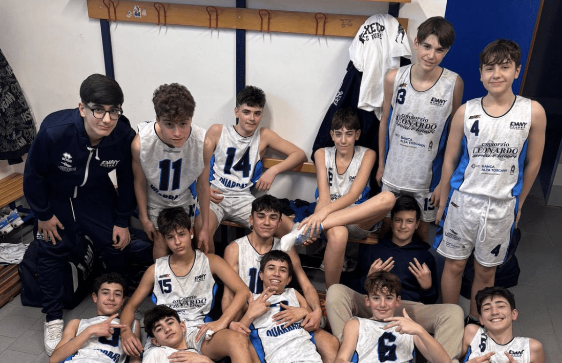 Terza uscita di questa seconda fase per la formazione Under 14 biancoblu, che hanno la meglio al PalaMelo di Chiesina. L’inizio sembra promettere bene per i padroni di casa, che tuttavia accusano una piccola flessione sul finale di primo quarto. E così al 10′ le due sfidanti sono separate da appena tre lunghezze sul 16-13. I ragazzi del Dany Basket si scuotono nella seconda frazione e spingono sull’acceleratore, piazzando un break di 33-11 e andando all’intervallo con un vantaggio più che rassicurante sul 49-24. Il rientro dagli spogliatoi vede sempre protagonisti i quarratini, che lavorano bene in difesa e concludono ottimamente in attacco. All’inizio dell’ultimo periodo siamo sul 74-32, mentre la partita va in archivio sul 99-41, con una prova corale davvero convincente da parte dei locali. Peccato solo per l’infortunio di Bacci a un minuto dal termine.